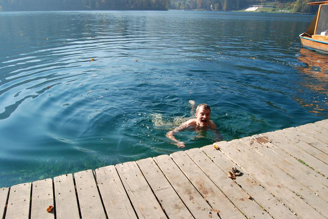 The sun was out, I think the temperature outside was in the mid 50′s, the water looked so nice, so I went for it and dove in, then got out quickly. It was cold, maybe not quite Colorado mountain-lake cold, but almost.
