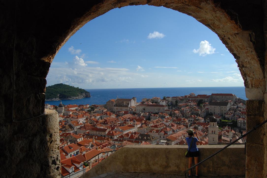 This year we headed out for the Dalmatian coast of Croatia, on the Adriatic Sea. Our first four nights are in Dubrovnik, a gorgeous medieval walled city. Our host, Pero, picked us up from the airport and showed us to his place inside the old walls of his town. During the war in 1991, about half of the buildings in Dubrovnik were hit by bombs and grenades, and Pero’s home was one of them. He showed us the remnants of the bombs that took the roof off of his home.