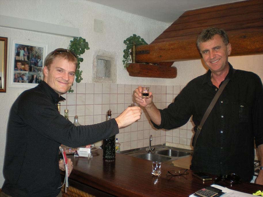 A funny thing happened tonight while eating dinner. We ate on the rooftop patio of a little restaurant. Somewhere in the town we could hear a chorus of singing, almost like Christmas carols. A Capella is big here, and it seems to be either all men or all women. So Marian asks our waiter what the music was and he says in his best English, “It’s the wives in the church, they practice… uh what do you call it… what’s the word in English… ah, I know, whore!” Marian says, “Do you mean choir?” “Ah yes, that’s the word.” and he walks off. We started cracking up.