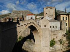 The attraction in Mostar is the bridge, which is the link between the two sides of the town. During the war in 1994, the bridge was destroyed, physically and symbolically, to separate the fighting sides. Today it is the heart of the town and quite a sight to see. One of the highlights is when the young guys of the town jump from the bridge, 60+ feet to the river below.
